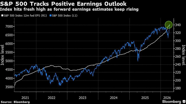 The S&P 500 Index has climbed to a record high, brushing off concerns about the potential economic fallout from the Iran war. (Source: Bloomberg) Â