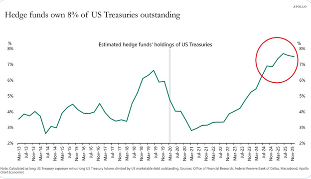 Following a recent shift in the ongoing AI revolution, hedge funds are piling into government debt, positioning for stability — or a shift in the AI story. (Source: Apollo)