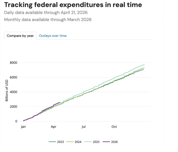 Federal expenditures month over month are increasing faster than in each of the previous three years. The government is already spending at crisis levels and has been since the pandemic lows of 2020. (Source: Federal Reserve)