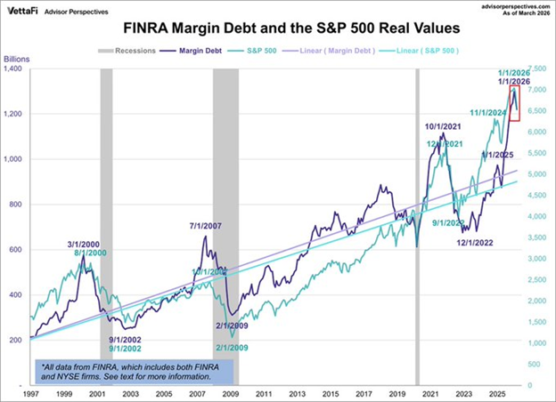 During March, as the market sold on Iran fears, U.S. margin debt declined by $32 billion to $1.22 trillion, the lowest since November 2025.