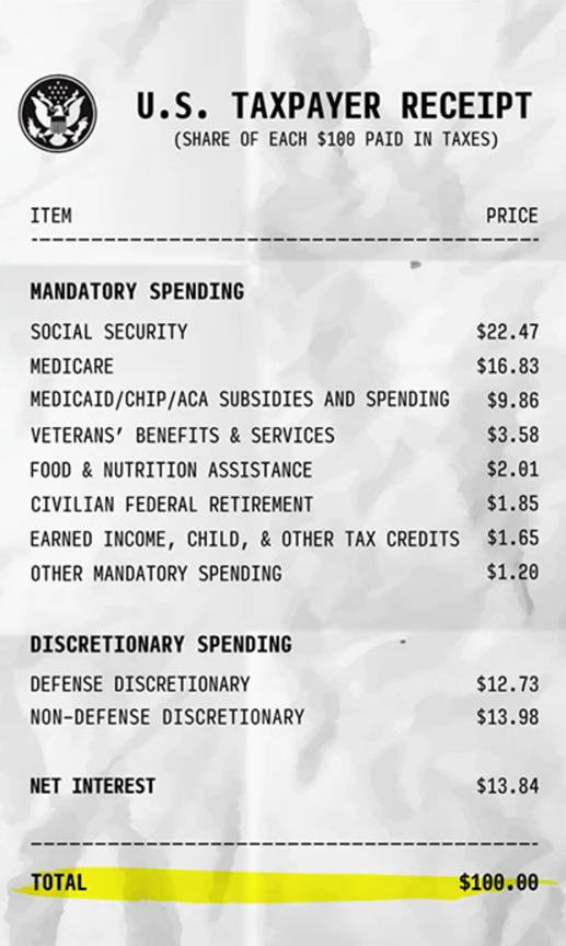 Every year, on this date, the Peter G. Peterson Foundation issues your tax receipt with the smug hope of getting taxpayers to digest what their government is spending your money on. (Source: Peter G. Peterson)
