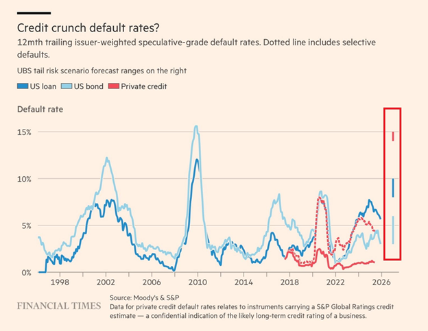 The Financial Times estimates that, based on available data, private credit could see a 15% default rate.