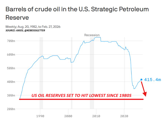 The proposed release of oil reserves will leave the U.S. critically short on oil (Source: The Kobeissi Letter)