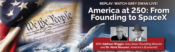 P.S. Last week’s Grey Swan Live! with Dr. Mark Skousen yielded a romp through political and economic “liberty” from the signing of the Declaration of Independence and the 25o-year anniversary of Adam’s Smith’s Wealth of Nations – with a strong detour through the renaissance accomplishments of Benjamin Franklin – all the way to Elon Musk and the entrepreneurs leading the U.S. economy into the AI and space age.